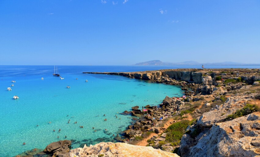 Cala Rossa is the most famous beach on Favignana, known as the Pearl of the Egadi. On this butterfly-shaped island, cars are not permitted, making it possible to enjoy pristine nature in complete peace.