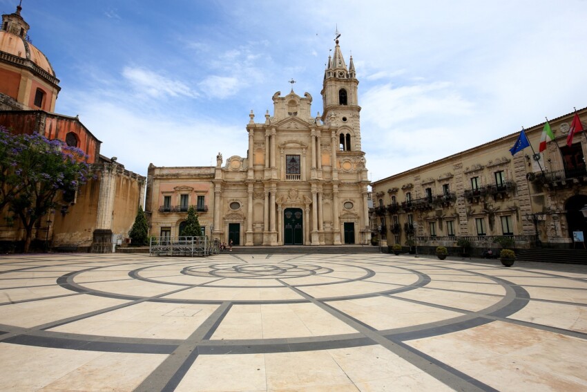 The historic centre of Acireale sits on the Timpa, a promontory approximately 80 metres high overlooking the coast, while the surrounding area is rich in crops, citrus groves and olive orchards. Also known as “The Pearl of Sicily”, this charming town is rooted in a past rich in history and culture, and boasts an important architectural heritage in the Baroque style. The heart of the city is Piazza del Duomo, where several of the most important buildings face onto the square, including the Cathedral Church, the Basilica of Saints Peter and Paul and the Town Hall.