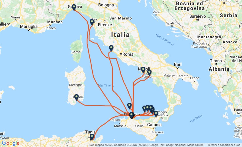 Below are the Italian ports connected to Palermo by scheduled ferry services.