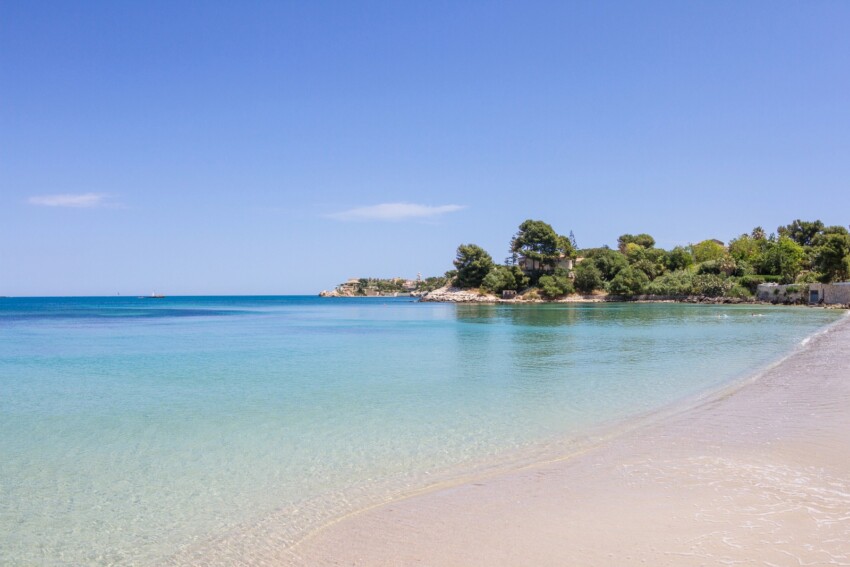 Continuing further north brings you to Agnone Bagni beach, another coastal hamlet within Augusta’s municipality, offering splendid views across Catania’s coastline and the Mount Etna volcano. About 16 km from Augusta’s centre, Agnone Bagni features a long stretch of golden sand bathed by clear, crystalline waters with sandy seabeds. The beach is extensive, with equipped bathing areas offering sunbed and umbrella rentals alternating with long sections of free beach. Between Agnone and Brucoli, the coast also hosts numerous coves long used as boat shelters, and underwater surveys conducted years ago uncovered an ancient wreck in less than 2 metres of water.