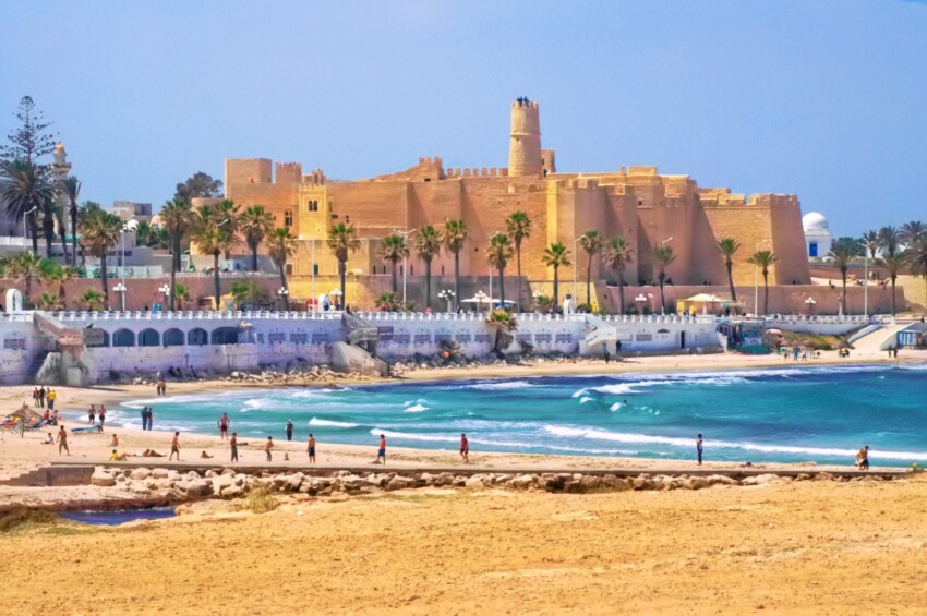 On the country’s eastern coast, the beaches stretching from Hammamet to Mahdia via Monastir and Sousse form a continuous sandy beach strip with clear sand and relatively calm seas, protected from northern winds by the Cape Bon Peninsula. Mahdia in particular retains a compact medina on a promontory and less-frequented beaches than the major tourist centres, with a more authentic atmosphere. To the north, Cape Bon Peninsula offers lesser-known alternatives: Kelibia, with its imposing Aragonese castle on the headland and the beach below, and the transparent waters of El Haouaria at the peninsula’s far tip, much frequented by divers for exceptional visibility.