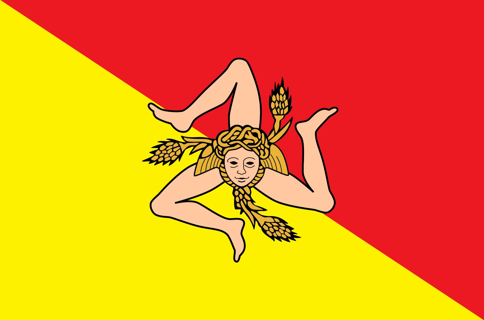 Il percorso verso il riconoscimento formale culminò con la legge regionale n. 1 del 4 gennaio 2000, che adottò ufficialmente la bandiera della Sicilia così come la conosciamo oggi. La normativa descrive con precisione il drappo: rettangolare, con i colori rosso aranciato e giallo divisi diagonalmente, al cui centro campeggia lo stemma regionale — la Triscele color carnato con il Gorgoneion e le spighe — di dimensioni pari a tre quinti dell’altezza della bandiera.